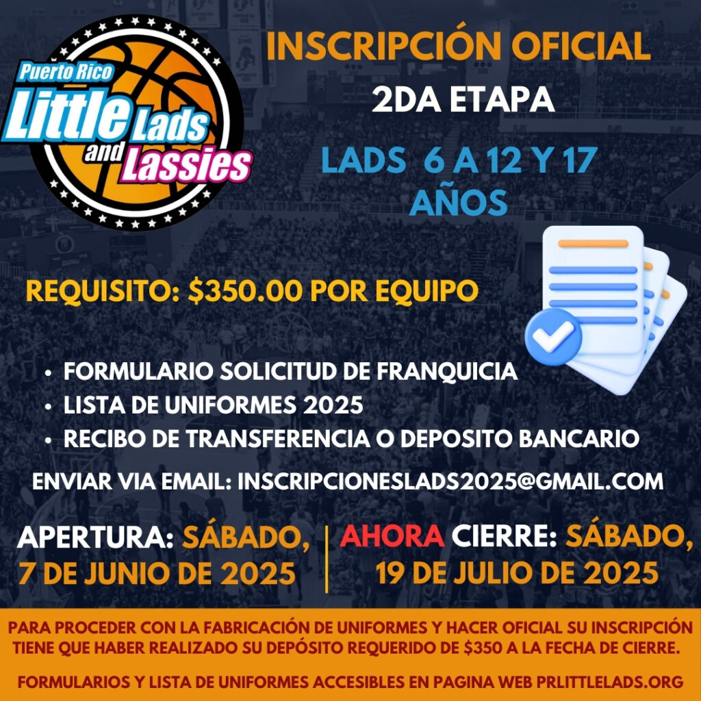 📣 ¡INSCRIPCIONES ABIERTAS! 🏀 Puerto Rico Little Lads and Lassies – 1ra Etapa ¡Ya comenzó el proceso de inscripción para